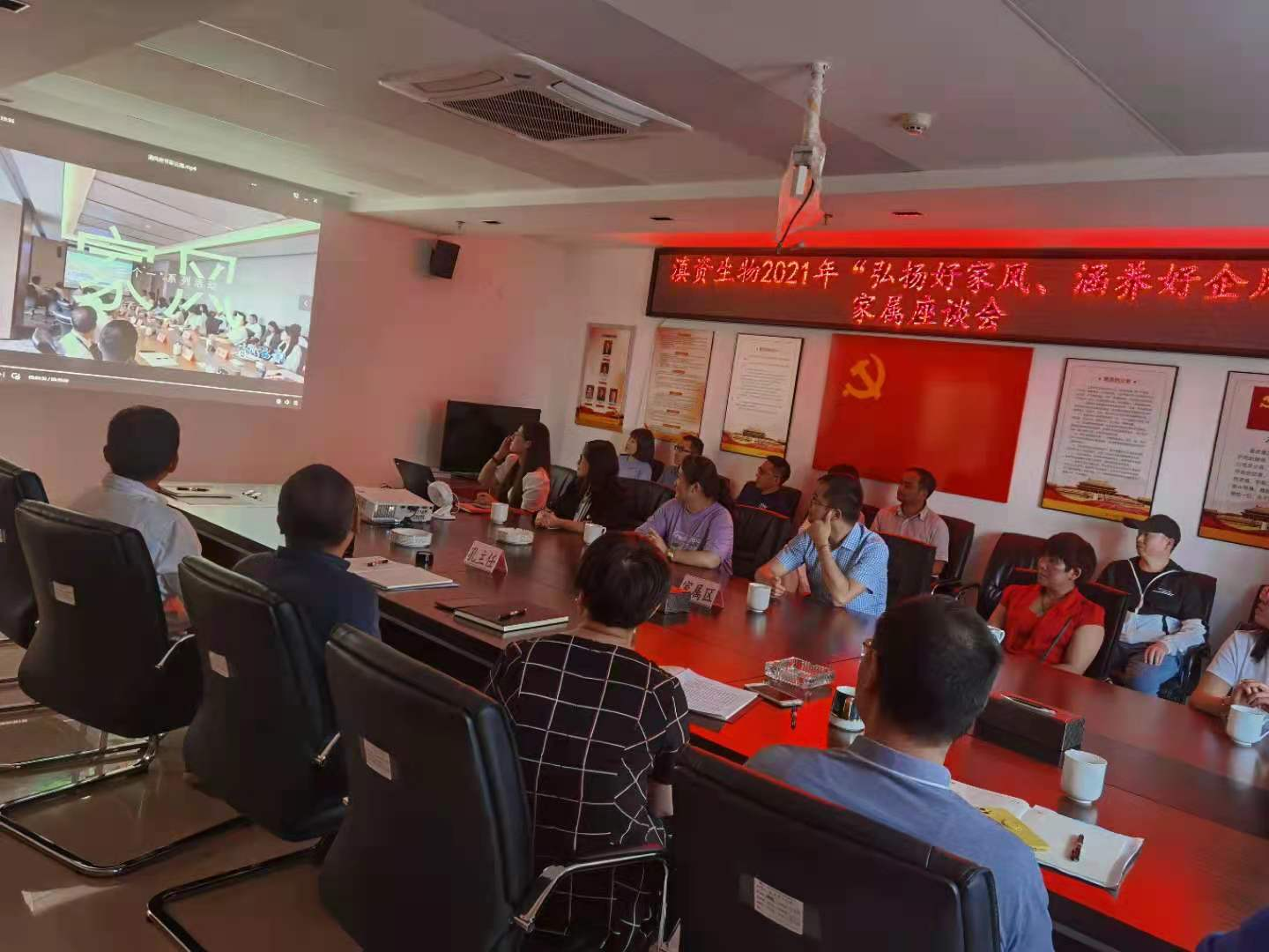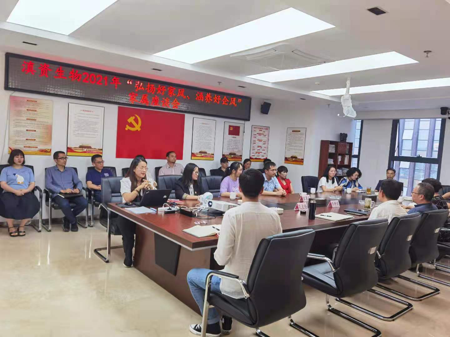 根据云南资本纪委《深化以案促改推进警示教育和家风教育常态化的工作方案》的通知(云资本纪发【2021】4号)及《关于组织开展“弘扬好家风、涵养好企风”领导干部及关键岗位人员家属座谈会的通知》要求,为把常态化开展好警示教育和家风教育作为一项重要政治任务,滇资生物党支部高度重视,结合公司实际,于2021年7月9日下午19:30在公司14楼大会议室由支部副书记、工会主席杨喜梅同志主持召开了“弘扬好家风、涵养好企风”家属座谈会,集团纪委纪律检查室孔忆平主任、公司本部中层及以上管理人员、关键岗位人员、公司各所属企业产权代表及其家属,共计34人参会(其中员工20人,家属14人)。